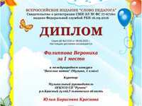 Воспитанница социального приюта "Ручеëк" Вероника Ф. приняла участие в Международном конкурсе "Весёлые нотки" (Музыка...