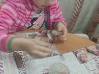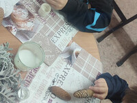 В социальном приюте "Ручеёк" прошло коллективное творческое занятие " Букетик из шишек" 💐