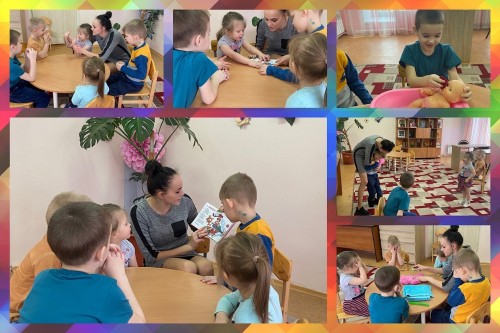 Также на занятии, дети отвечали на вопросы, играли в игры «Мочалка", "Что не стало?», а также встретили у себя в гостях мальчика Ваню которому дети без труда помогли и умыться, и одеться.