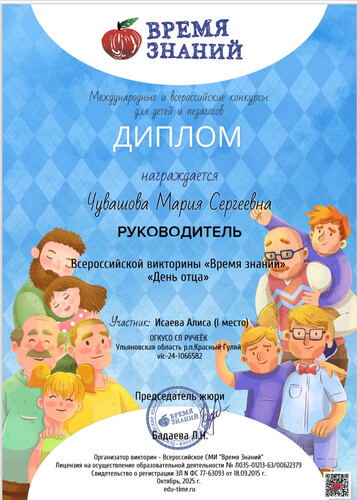 Воспитанница социального приюта "Ручеёк", Исаева Алиса, приняла участие во всероссийской викторине " Время знаний",приуроченной к празднику "День отца" 💙